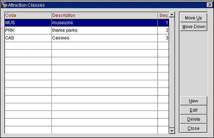 Sequence. The order you would like the attraction to be in the ORS- Attraction Classes screen. This is the order the attraction class also appears on other Attractions Class drop down list of values.