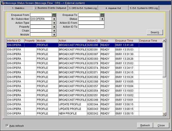 Note: The middle part of the Business Event Outqueue screen is the real message status screen and shows the process status of business events. The Search Filter can be set to help find certain business events in this status screen.