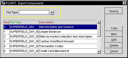 To manually configure the export, select Miscellaneous>File Export>General or Configuration>External>Export Files to access the Export File List screen. Select the export from the list and select the Edit button to access the Export File Details screen. The Export File Details screen allows you to specify the particular features of the export file. Once configured, refer to Generate Export Data for information on generating the export.