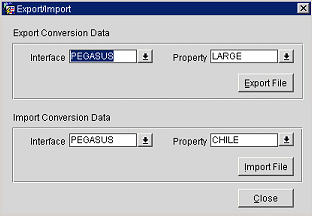 The upper part of the Export/Import screen is called the Export Conversion Data.