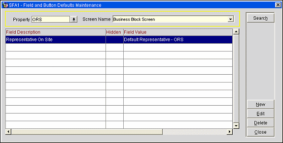 To create a field default, select the New button. To edit an existing default, highlight the field default you want to edit and select the Edit button. The Field Maintenance Details screen appears. Provide the following information: