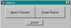 Select the Options button to open the options screen. Two menu options are available: Apply Changes and Purge Report.