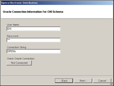 Oracle Connection Information for OXI Schema