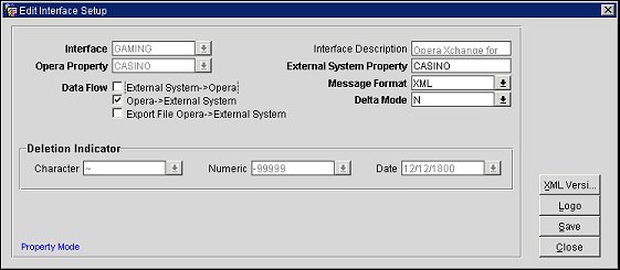 To edit the details of an interface property, select Interface Configuration>Edit Interface from the main menu, or select the Edit button from the Interface and OPERA Property Configuration screen.