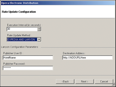 • For an ADS- Expedia installation with an existing rate update configuration for Lanyon, select the rate update method as EXPEDIA AND LANYON. This setting will activate the rate update process for Expedia ARI and the Lanyon rate update method to run simultaneously on the same machine.
