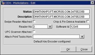 Swipe Reader Attached. Select this check box if there is a credit card reader attached to the defined workstation.