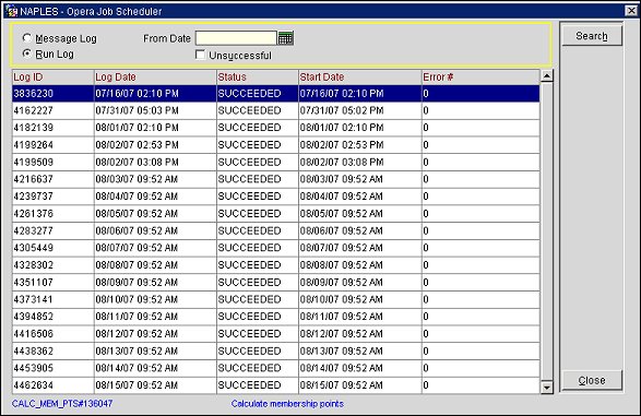 The OPERA Scheduler is a utility that is used to process multiple batch jobs at the same time. It is not necessary for the system to complete one job before starting another. From the OPERA Scheduler screens, users can schedule batch jobs; view the state of the jobs to see whether the jobs are in process or satisfactorily completed; view message logs; and maintain the processes such as enabling/disabling them or deleting them.