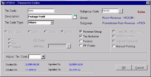 On the End of Day Sequence of February 27, the $200.00 room charge is applied to the guest and a next day credit for the item price of $25.00 is created internally by the system. The guest goes to the breakfast outlet on February 28 and a POS charge of $35.00 is debited against the guest account. OPERA will then apply this charge against the allowance that was generated during the End of Day Sequence. The resultant is that the item price was exceeded, but the allowance wasn't. The guest doesn't have to pay the extra $10.00 at the F&B outlet. Internally, the property accepts a package loss and accordingly we post to this transaction code configured for package loss. This is classified as a Package Loss. Usually in this case the property will pay the F&B outlet the difference.