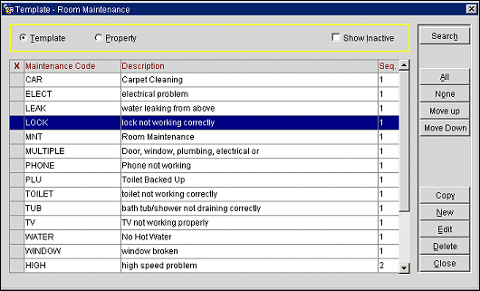 Inactive. Click this check box to mark the code as active or inactive. If it is inactive it is excluded from the display list from the Rooms Management>Maintenance screen.