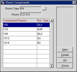 Select the New button to add rooms or other component rooms to the component room you are configuring.
