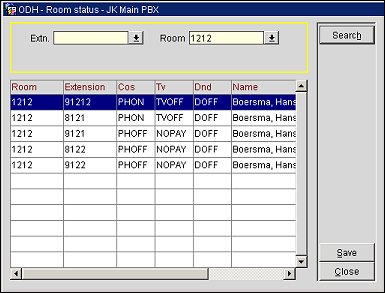 The grid is interactive and displays the status of the available features for the selected interface. Certain columns in the grid are absolute and cannot be modified (such as the room and extension). In other columns, users can modify the status of a specific feature. As an example, a telephone system interface can be used to turn the message light on or off in a guest room, to enable or disable the phone in guest rooms, and to view the status of the phone system.